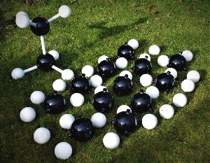 So, when you really need to grab people’s attention from a long way away, we offer giant molecular models with ball diameters up to 15cm, at scales of up to 20cm=1Å, with the possibility for even larger scale models. As with our standard range of models, giant models can be made of any molecule or crystal that you wish.